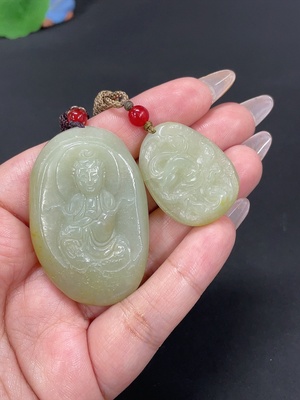 H38531090 Hetian Jade Pendant Guanyin + Dragon Dominating the World