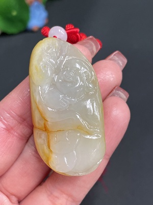 H25840089 Hetian Jade Pendant - Buddha Figure - Undetermined Skin Color Origin - Non-Hetian Jade Beads - Total Weight Approx. [Including Rope] 47.8g