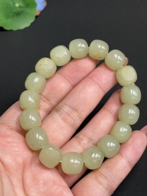 H34074080 Hetian Jade Bracelet, approx. 11.7 mm beads, total weight approx. 48.1g, undetermined skin color origin