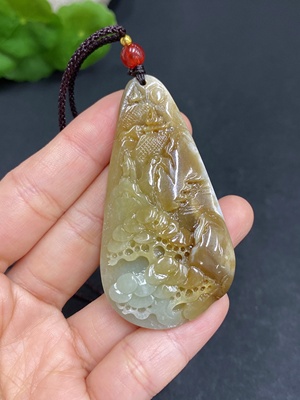 H30467319 Hetian Jade Pendant Landscape Including Cord Approx. 32.4g Containing Other Mineral Components