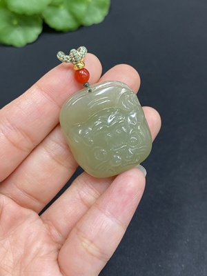 H21413611 Hetian Jade Handheld Ornament - Abundance Every Year - Undetermined Skin Color Origin - Total Weight (Including Rope) Approx. 82g