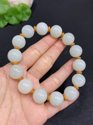 H29430868 Hetian Jade Bracelet, approx. 11.7mm, total weight approx. 44.4g, with non-Hetian Jade beads