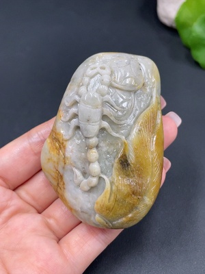 H20272326 Hetian Jade Handheld Carving 'Dominating the World' with Undetermined Skin Color Origin, Containing Other Mineral Components, Total Weight Approx. 138.3g