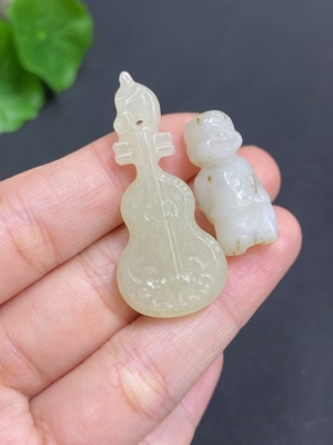 H22496635 Hetian Jade Pendant - Soulmate + Landlord, Total Weight Approx. 9.7g