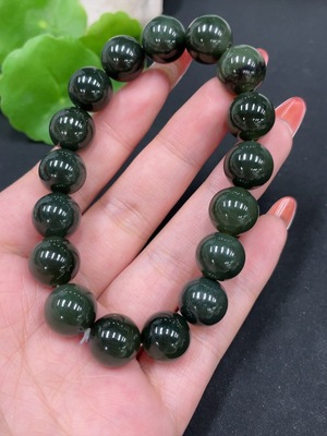 H35084989 Hetian Jade Bracelet, approx. 8mm beads, total weight about 15.1g, containing other mineral components