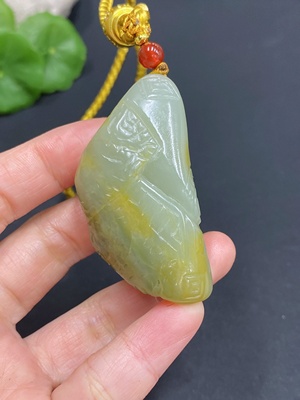 H25866989 Hetian Jade Handheld Carving Antique Style Undetermined Skin Color Origin Total Weight Approx. [Including Cord] 78.4g