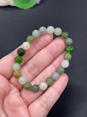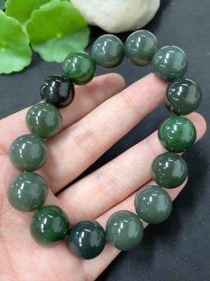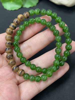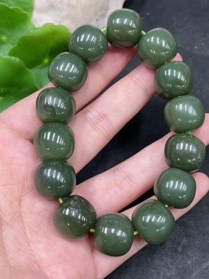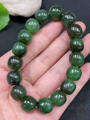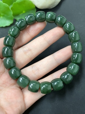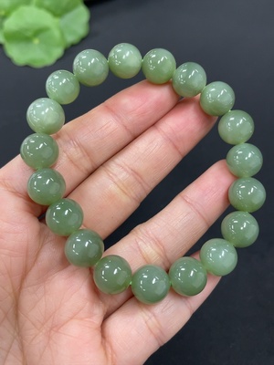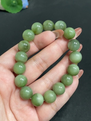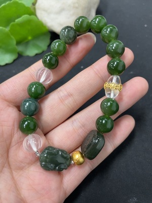 H38482003 Hetian Jade Green Jade Bracelet, approx. 9.6mm, total weight approx. 31.2g, with non-Hetian Jade beads, non-gold