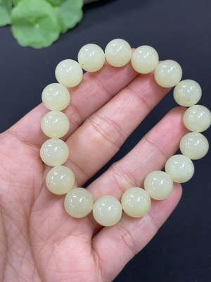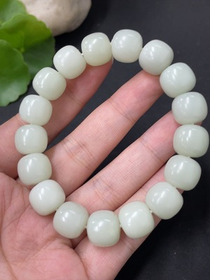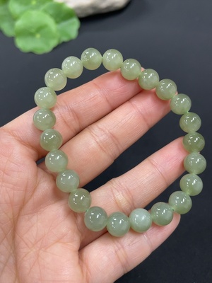 H37414430 Hetian Jade Bracelet, approx. 7.8mm beads, total weight approx. 17.6g