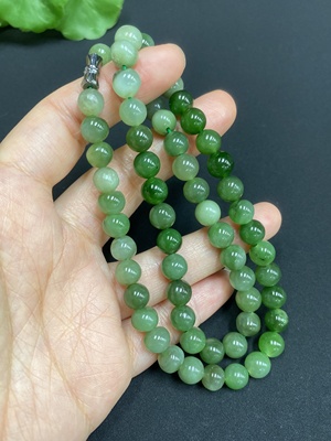 H26976486 Hetian Jade Beaded Necklace Approx. 8mm Non-Gold Total Weight Approx. 47.8g