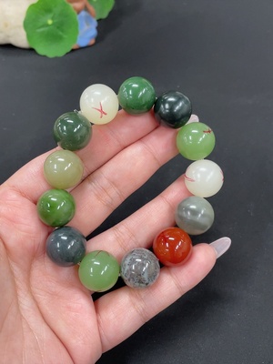 H38530636 Hetian Jade Bracelet, approx. 15.7mm, total weight approx. 78.7g, contains other mineral components, non-Hetian Jade accessory beads, with impurities