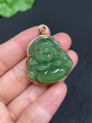 H36270566 Hetian Jade Jasper Inlaid Buddha 18k Gold Total Weight Approx. 13.1g With Diamond Accents