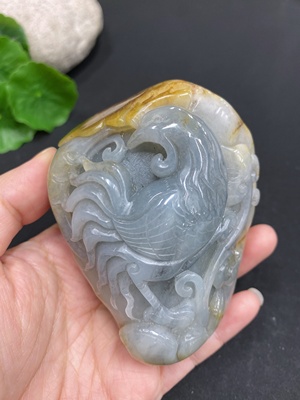 H21390808 Hetian Jade Handheld Piece Rooster Undetermined Skin Color Formation Contains Other Mineral Components Total Weight Approx. 350.9g