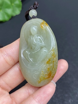 H33860181 Hetian Jade Pendant - Enlightenment - Undetermined Skin Color Origin - Total Weight (including rope) Approx. 50.9g
