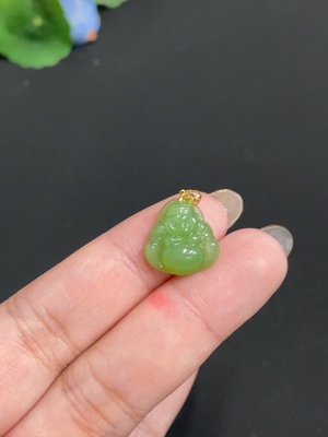 H36236657 Hetian Jade Inlaid Pendant Buddha, Total Weight Approx. 1.6g, 18k