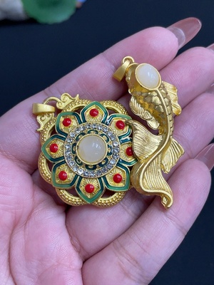 H35099813 Hetian Jade Inlaid Pendant Total Weight Approx. 28.4g Non-Gold