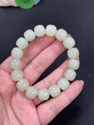 H39628585 Hetian Jade Bracelet, approx. 11.7mm beads, total weight approx. 48.6g