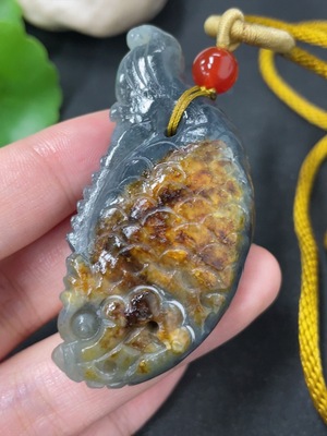 H40724811 Hetian Jade Pendant - Abundance Every Year - Undetermined Skin Color Origin - Total Weight (Including String): Approx. 38.5g