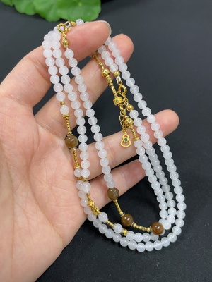 H38490949 Hetian Jade Bead Necklace, Approx. 3.8mm, Non-Gold Inlaid, Total Weight Approx. 19.1g