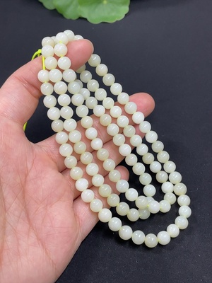 H39619976 Hetian Jade Bead Necklace, Approx. 5.4mm, Total Weight Approx. 34.5g