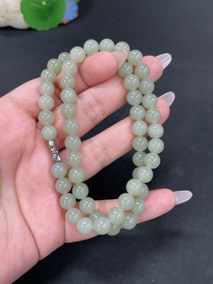 H38540495 Hetian Jade Bead Necklace, Approx. 7.9mm, Total Weight Approx. 44.8g