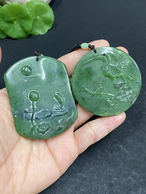 H10078900 Hetian Jade Pendant - Lotus and Fish, Total Weight 35.7g