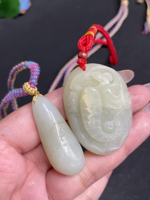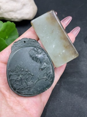 H33897570 Hetian Jade Pendant Landscape Pendant + Plain Pendant Total weight approx. 80.4g