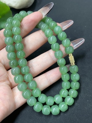 H05316277 Hetian Jade Bead Necklace, Size 13.7, Total Weight 63g