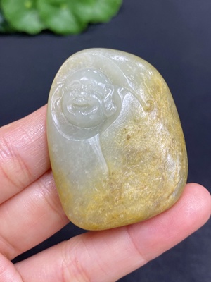 H04309732 Hetian Jade Buddha Pendant Inlaid, Total Weight 3.7g, Non-Gold Inlay