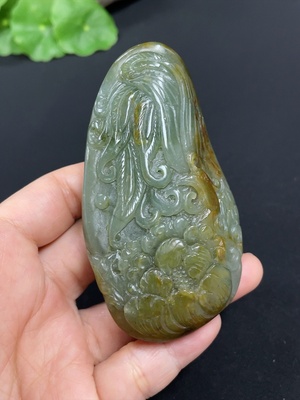 H38530281 Hetian Jade Pendant - Phoenix and Peony Design, Total Weight Approx. 109.8g, Undetermined Skin Color Origin