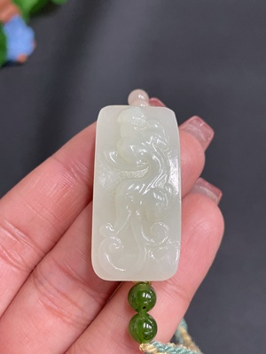 H25866952 Hetian Jade Hand Plaque, Auspicious Beast, Total Weight Approx. [Including Rope] 17.3g