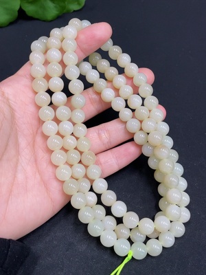 H35169959 Hetian Jade Bead Necklace, Approx. 8mm, Total Weight Approx. 85.9g