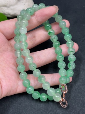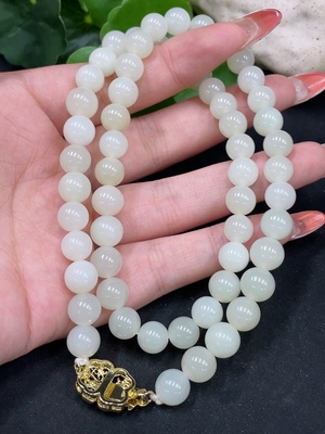 H35085458 Hetian Jade Bead Necklace Approximately 8mm Non-Gold-Inlaid Total Weight About 50.8g