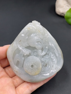 H38503629 Hetian Jade Handheld Carving "Great Ambition" Non-Gold