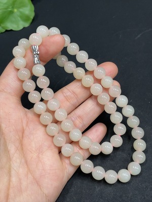 H36259225 Hetian Jade Bead Necklace Approx. 7.7mm Total Weight About 43.2g Non-Gold