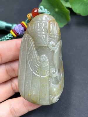 H17846179 Hetian Jade Handheld Ornament, Antique-style Piece, Undetermined Skin Color Origin, Total Weight Approx. (Including Cord) 96.1g