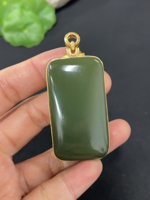 H37412182 Hetian Jade Inlaid Plain Pendant with 71% Gold Content, Total Weight Approximately 25.9g, Set with Diamonds
