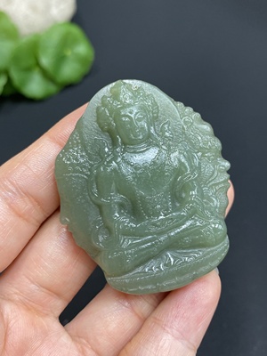 H27108490 Khotan Jade Pendant Green Tara Total Weight Approx. 34.4g