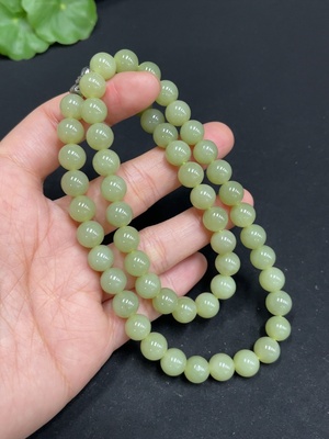 H34072209 Hetian Jade Bead Necklace Approx. 7.8mm Total Weight About 43.7g