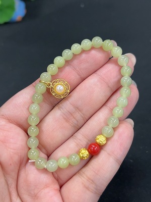H39646556 Hetian Jade Bracelet, Approx. 5.9mm, Total Weight Approx. 11.7g, Beads Not Hetian Jade, Not Gold