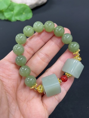 H39604437 Hetian Jade Bracelet, Approx. 9.7mm, Non-Gold, Total Weight Approx. 32.5g, Beads Not Hetian Jade