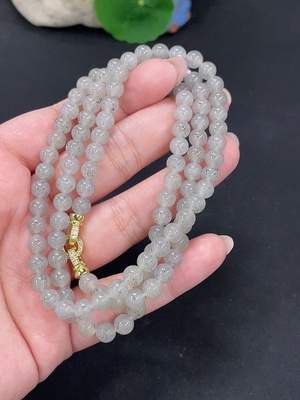H39627462 Hetian Jade Bead Necklace Approx. 5.9mm Non-Gold Total Weight Approx. 37.9g
