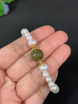 H37387721 Hetian Jade Bracelet, Approx. 11.7mm, Total Weight Approx. 6.8g, Non-Gold, Beads Not Hetian Jade