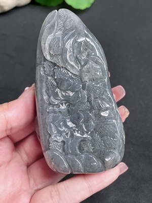 H24726426 Hetian Jade Seed Material Handheld Carving - Landscape, Total Weight Approx. 201.7g, Undetermined Skin Color Origin, Contains Other Natural Mineral Components