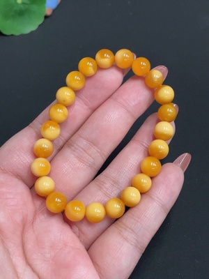 H35099916 Yellow Dragon Jade Bracelet, Approx. 8mm Beads, Total Weight Approx. 17.2g