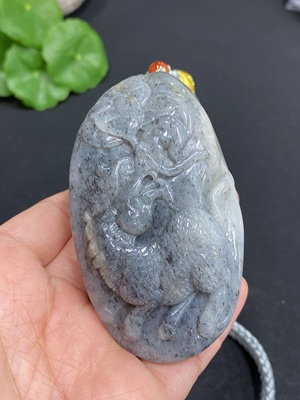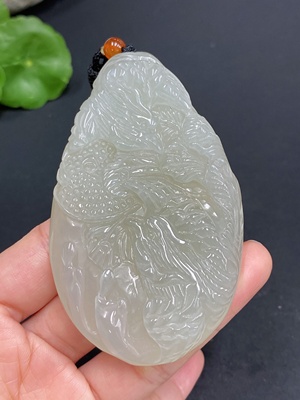 H28281219 Hetian Jade Handheld Piece Kylin Gross Weight (with rope) Approx. 150.8g Undetermined Skin Color Cause