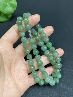 H30505240 Hetian Jade Bead Necklace, Approx. 7.7mm, Total Weight Approx. 43.3g