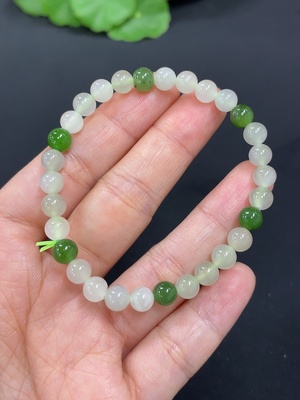 H40721898 Hetian Jade Bracelet, approx. 5.7mm beads, total weight approx. 9g