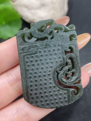 H34036061 Hetian Jade Pendant Dragon Plaque Total Weight Approx. (with rope) 44g