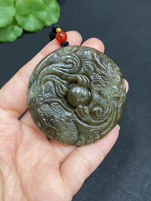 H20237167 Hetian Jade Pendant Dragon Plate Total Weight Approx. (with rope) 49.7g