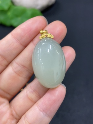 H40743474 Hetian Jade Egg Pendant with 18K Gold Clasp and Non-Gold Chain (Total Weight Approx. 14.5g)
